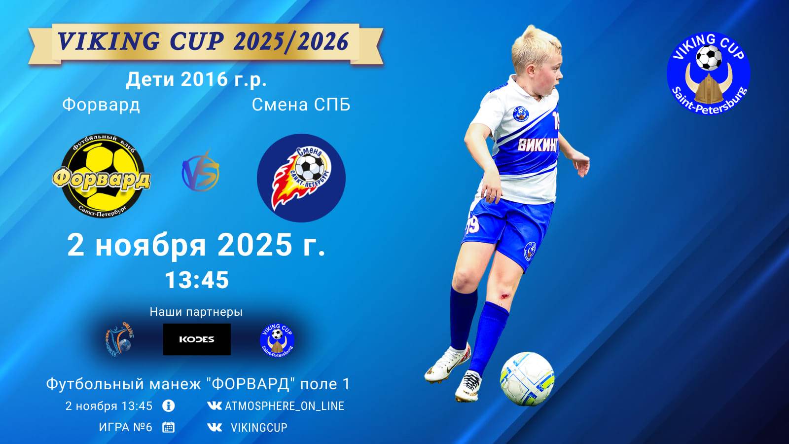 VIKING CUP среди команд 2016 г.р. (U9), Поле 1 2 ноября 2025 САНКТ-ПЕТЕРБУРГ, ФЦ "Форвард" ФК "Форвард" - ФК "Смена СПБ"/VIKING CUP, Игра №6, 02-11-2025 13:45