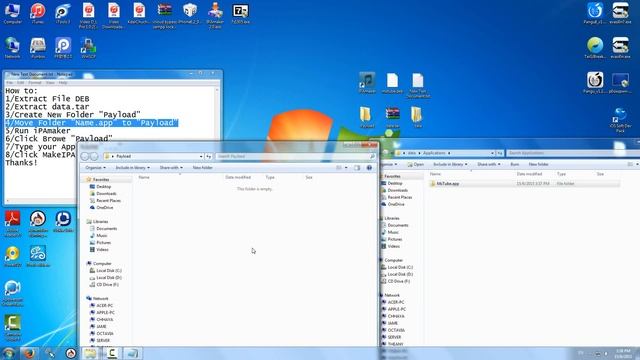 [ iPAmaker v2.0] How to Convert Cydia apps(deb) files to .IPA files for iPhone/iPod/IPad Download 7zip.exe: http://www.7-zip.org/download.html iPAmaker v2.0.exe: https://drive.google.com/file/d/0BzrAbsc-PDE7SjZyVUxhTENIaDg/view?usp=sharing How to: 1/Extract File DEB 2/Extract data.tar 3/Create New Folder "Payload" 4/Move Folder "Name.app" to "Payload" 5/Run iPAmaker 6/Click Browe "Payload" 7/Type your App Name"..." 8/Click MakeIPA Thanks!