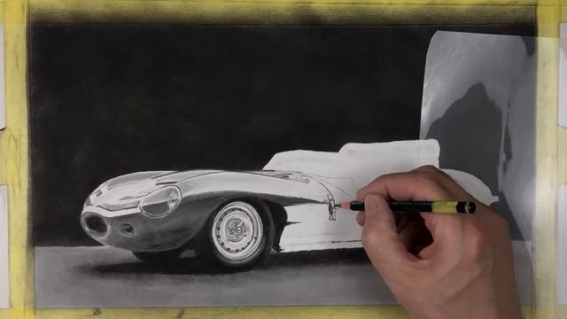 Drawing classic racing car with graphite pencils (Jaguar D Type) - Timelapse