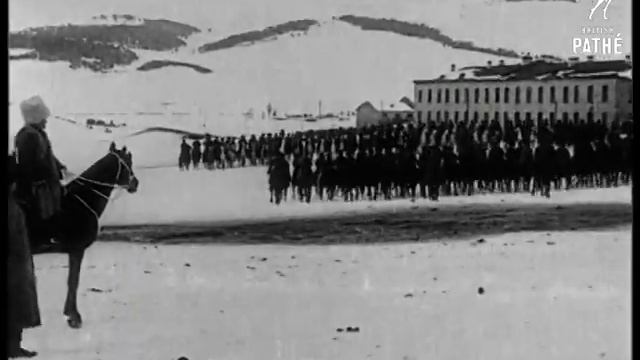 Mounted Troops. Location of events unknown. Troops on horseback (Cossacks?) approach; snow on ground; people stand at BG watching; & large 2-story building in BG. LS same; with tall hills in BG. More; various shots of same - CU 1 man rides past; with curved sword out. Russia; World War One. FILM ID:1940.23 A VIDEO FROM BRITISH PATHÉ. EXPLORE OUR ONLINE CHANNEL, BRITISH PATHÉ TV. IT'S FULL OF GREAT DOCUMENTARIES, FASCINATING INTERVIEWS, AND CLASSIC MOVIES. http://www.britishpathe.tv/ FOR LICENSING ENQUIRIES VISIT http://www.britishpathe.com/ British Pathé also represents the Reuters historical collection, which includes more than 136,000 items from the news agencies Gaumont Graphic (1910-1932), Empire News Bulletin (1926-1930), British Paramount (1931-1957), and Gaumont British (1934-1959), as well as Visnews content from 1957 to the end of 1984. All footage can be viewed on the British Pathé website. https://www.britishpathe.com/
