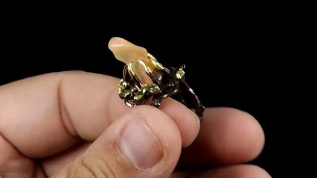Серебряное дизайнерское кольцо с натуральным огненным фантазийным опалом Размер кольца: 18,5 Размер камня: 11x4 mm Вес изделия: 7.3 гр Происхождение камня : Эфиопия Чистота камней: Tranlucent Лицо кольца: х mm Дополнительная обработка камня: Нет Дополнительные камни: Peridot Дополнительная обработка металла: Black Rhodium & Gold Твердость: 6,5 Посетите наш сайт: https://zlatogorye.ru https://silverlin.ru http://www.opal.today