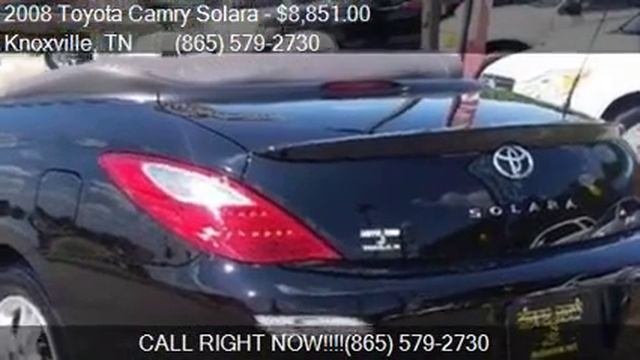 This 2008 Toyota Camry Solara SE V6 2dr Convertible 5A is for sale in Knoxville, TN 37924 at Moto Now, Inc. Contact Moto Now, Inc at http://www.motonow.net or http://www.carsforsale.com/vehicle/details/3-3996884 Engine: 3.3L V6 Transmission: Automatic 5-Speed Color: Black Mileage: 143262 Contact Moto Now, Inc 8421 Asheville Hwy Knoxville, TN 37924 to test drive this 2008 Toyota Camry Solara SE V6 2dr Convertible 5A today.