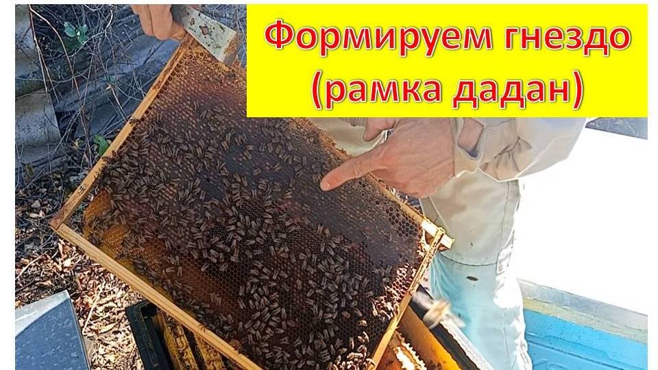 Формирование гнезда пчёл для зимовки на дадановской рамке.