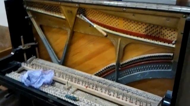 Пианино не строит (шутка) Пианино стоит почти разобранное, без клавиш, механики, струн и колков. Это пианино было мной разобрано. В итоге, в класс поставили новое пианино, которое позже я настраивал. Новое пианино отлично строит.