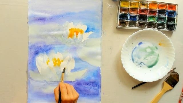 Кувшинки акварелью