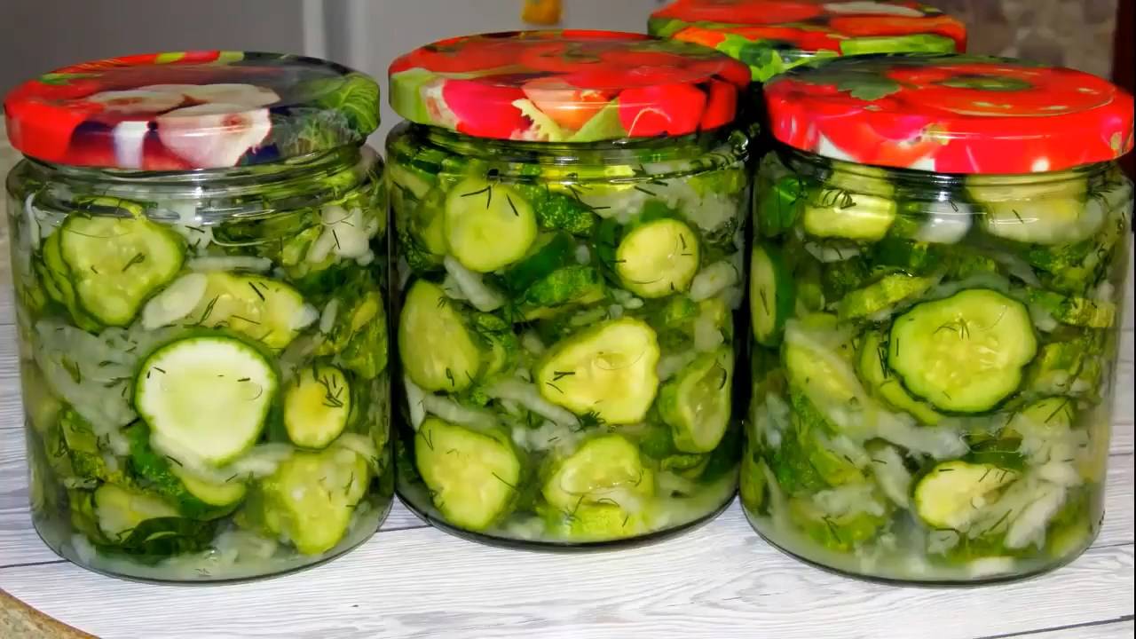 У него одна особенность - хранить его нужно в холодильнике или в холодном месте. Но зимой будет такое наслаждение, баночка сразу съедается. Он как свежий! Рецепт: Огурцы - 2 кг Лук - 3 шт (среднего размера) Чеснок - 130 гр Укроп - 1 пучок Соль - 50 гр Сахар - 125 гр Уксус 9% - 70 мл ( 4,5 ст.л) Получилось 3 банки по 0,5 литра