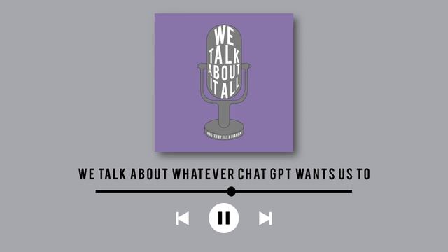 Jill and Gianna talk about what is on the script they get provided from Chat GPT. They also discuss the pros and cons of Chat GPT / AI Socials Instagram - https://www.instagram.com/wetalkaboutitall/ Linktree - https://linktr.ee/wetalkaboutitall Spotify - https://open.spotify.com/show/0vdCyEpTPZcshY6VW7QE7N Apple Podcasts - https://podcasts.apple.com/us/podcast/we-talk-about-it-all/id1657253692 Anchor - https://anchor.fm/wetalkaboutitall Amazon Podcasts - https://music.amazon.com/podcasts/e8243b1e-edff-4aca-99e2-07fcd767e4da/we-talk-about-it-all Stitcher - https://www.stitcher.com/show/1046036 iHeart Radio - https://www.iheart.com/podcast/269-we-talk-about-it-all-105336607/ Pandora - https://www.pandora.com/podcast/we-talk-about-it-all/PC:1001046036 Google Podcasts - https://podcasts.google.com/feed/aHR0cHM6Ly9hbmNob3IuZm0vcy9jYjM3NzNlOC9wb2RjYXN0L3Jzcw Castbox - https://castbox.fm/channel/id5230407?country=us RadioPublic - https://radiopublic.com/we-talk-about-it-all-GEnDg4
