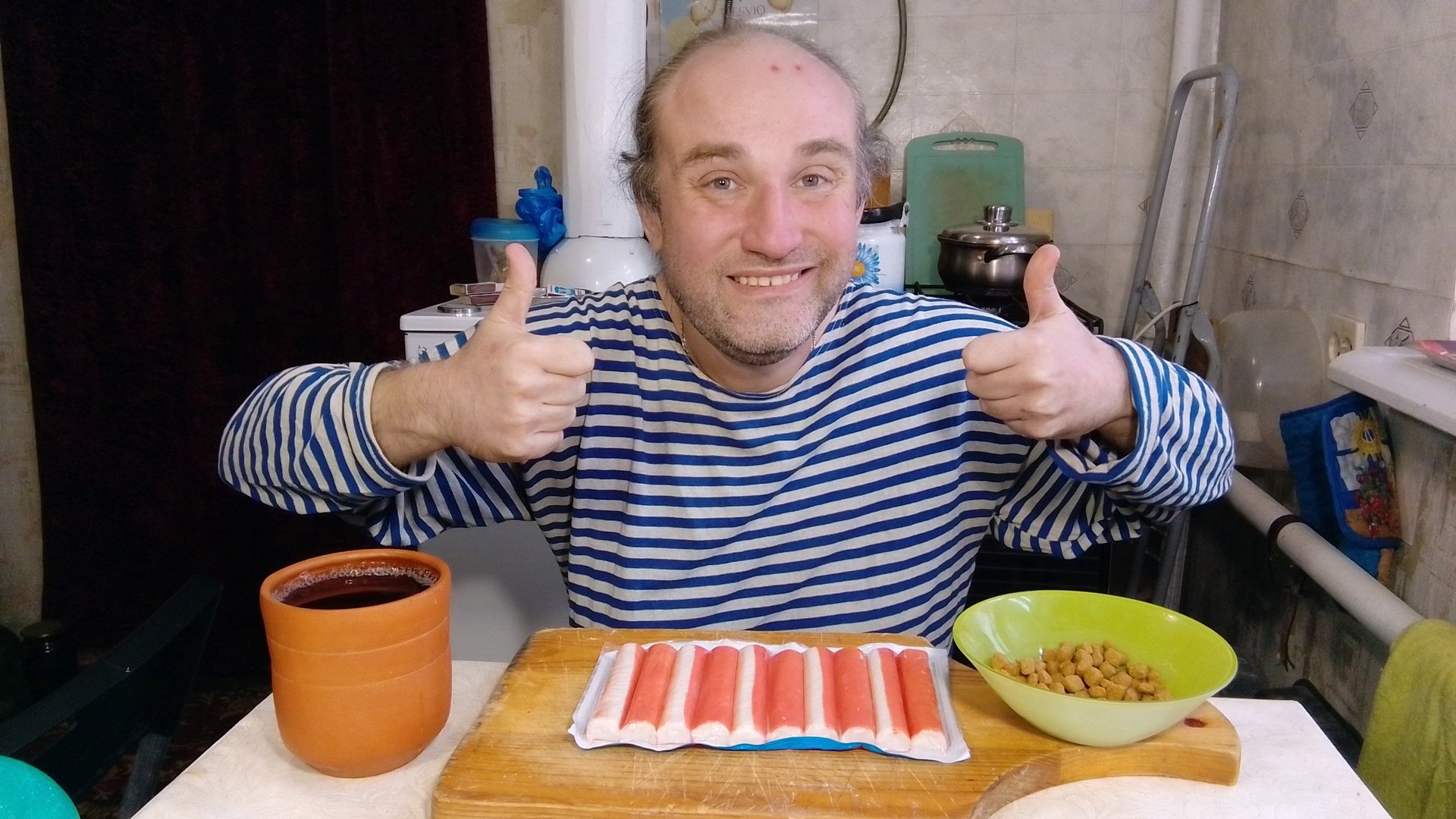 завтрак с Рыжулей. крабовые палки, чай-чаёк, корм. мукбанг. обжор. еда на камеру. диета. шизофрения.