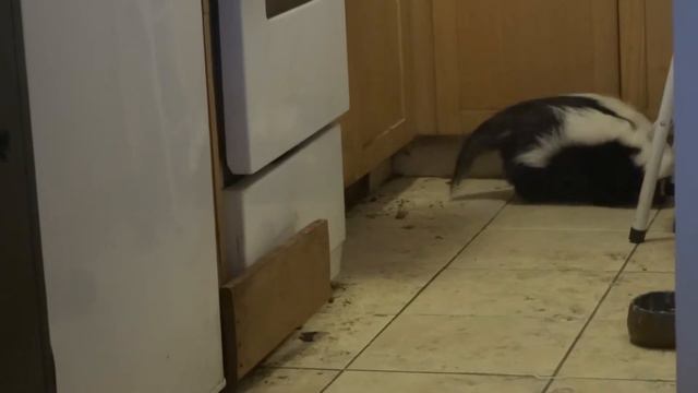 Cooper the now lonely skunk looks around his home. Sorry for the mess, I'm packing, hopefully to move.