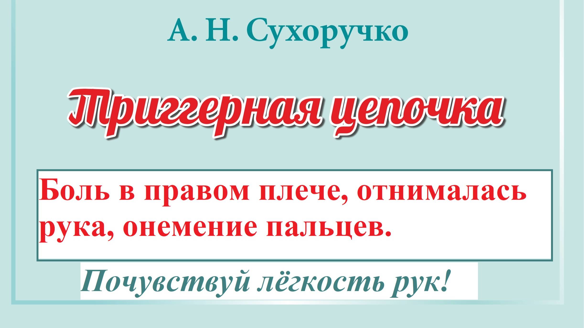 Боль в плече, отнималась рука, онемение пальцев. Триггерная цепочка профессора Сухоручко А.Н.