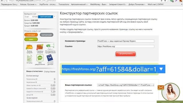 Партнерка с выводом реальных денег. За одну регистрацию - 1 доллар. (фрешфорекс) Моя реферальная ссылка https://freshforex.org/?aff=61584&dollar=1 Ссылка на конструктор ссылок: https://myfreshforex.com/partner_link_generator
