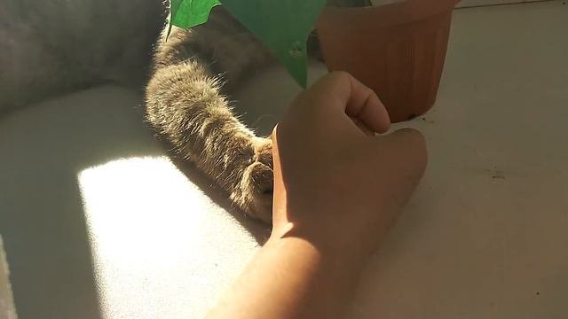 Кот играет с горшком приколы с котами