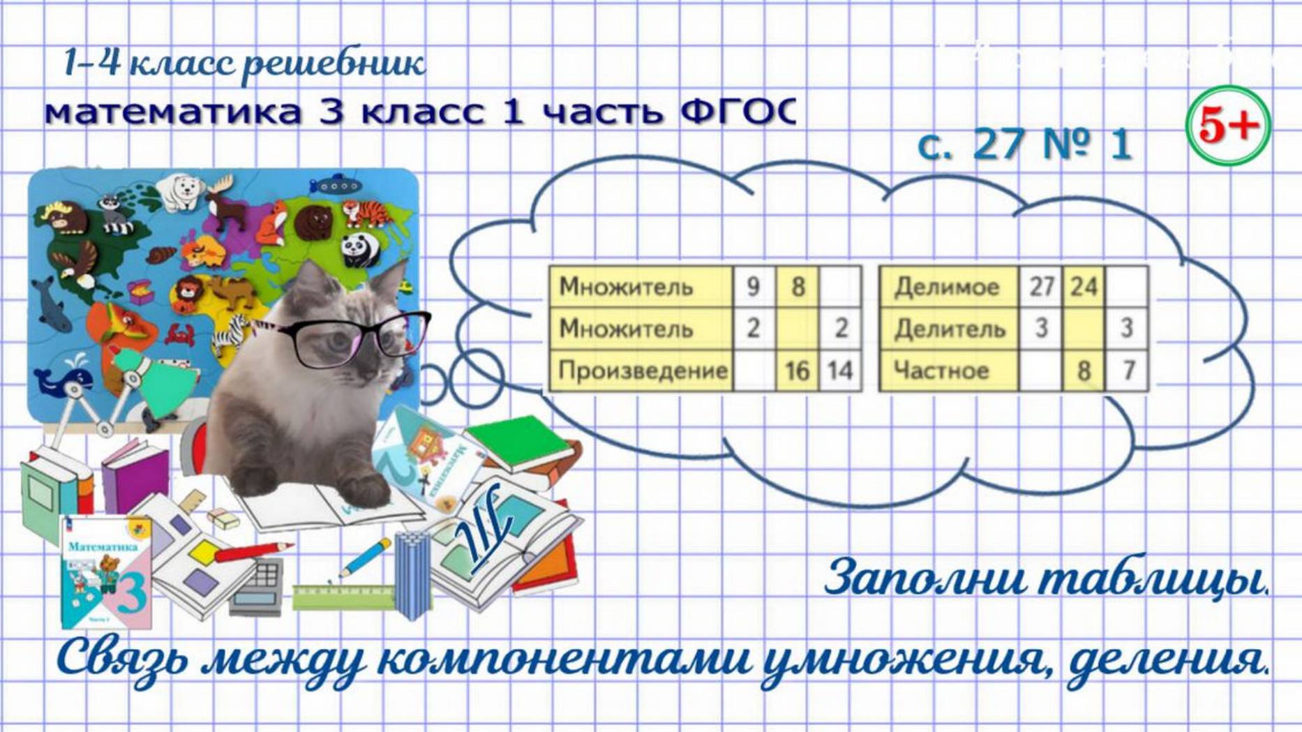 Стр 27 № 1 заполни таблицы, связь между компонентами умножения, деления математика 3 кл 1 часть ФГОС