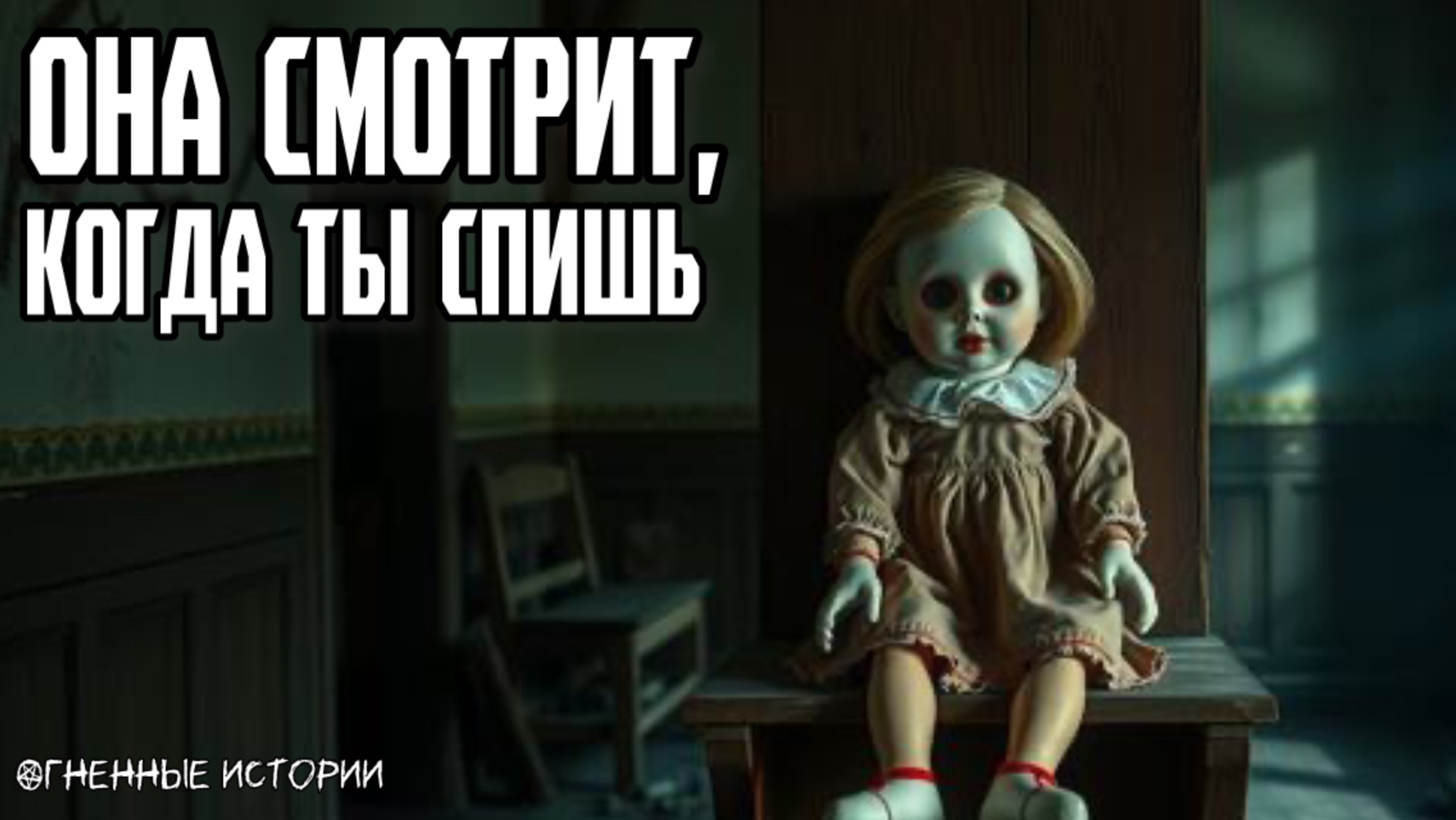 Сначала она просто стояла. Потом начала менять позу. Когда Полина заметила, что кукла каждую ночь ближе к её кровати — уже было поздно. Эта игрушка не знала сна. Её стеклянные глаза следили даже в полной темноте. Кто бы ни прикасался к ней, слышал ночью шепот и чувствовал холодное дыхание рядом. Дом сгорел, а кукла осталась — целая. С тех пор она появляется в других домах… и ждёт, пока ты уснёшь. #страшнаяистория #куклаужасов #нечтовтемноте #проклятаяигрушка #ужасныеночи #онаследит #страх #историянаночь #дьявольскаякукла #никогданезасыпай