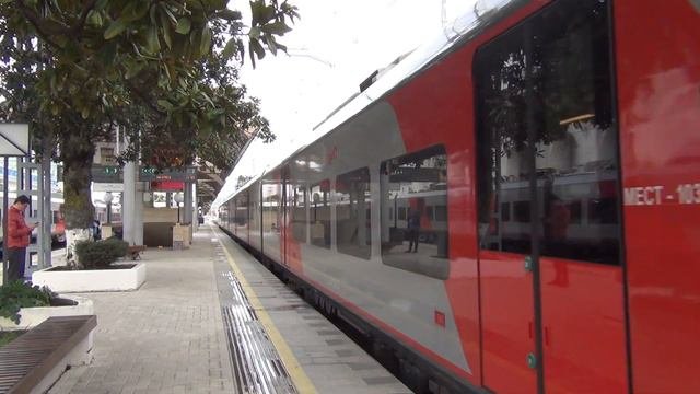 Электропоезд ЭС1-031 «Ласточка» сообщением №7051 Сочи — Красная Поляна отправляется со ст. Сочи, г. Сочи, Краснодарский край, Северо-Кавказская железная дорога, Россия, 14:07 15.12.2013 г.