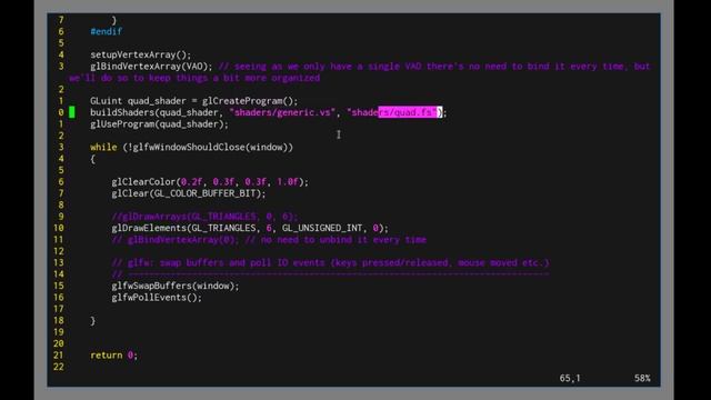 https://discord.gg/R2SpHy5fkc 💰 Patreon: https://www.patreon.com/stevet 💰 SubscribeStar: https://www.subscribestar.com/akami-channel 💳 Paypal: https://www.paypal.com/paypalme/akamiyoutube OpenGL on Windows, MacOS, and Linux Tutorial Playlist: https://www.youtube.com/playlist?list=PLTMkHZdpUNxIdoFXVoE8rKwf9I_0wkv01 It might be easier to just download the code from my Github for this one. Link below. You will also want syntax highlighting for the GLSL shader language in whatever text editor or IDE you are using. For highlighting in Vim I am posting a video for that at the same time this video is going up. Check the link below. Sublime Text: You will need to install the Sublime package manager if you haven't already. Make sure that whatever info you find online is for Sublime 3 if you are using Sublime 3. It might take some getting used to installing packages in Sublime. Let me know if you have trouble and I will make a video on the topic. Here's the package to install after first installing the package manager: https://packagecontrol.io/packages/OpenGL%20Shading%20Language%20(GLSL) Vim: https://youtu.be/pfC9d0KlOyM Visual Studio: https://marketplace.visualstudio.com/items?itemName=DanielScherzer.GLSL My social media. If you want to help me, follow me on Reddit and upvote my posts ; ) GitHub: https://github.com/akami-channel Patreon: https://www.patreon.com/stevet SubscribeStar: https://www.subscribestar.com/akami-channel Paypal: https://www.paypal.me/stevetpaypal Reddit: https://reddit.com/user/Akami_Channel Twitter: https://twitter.com/channel_akami https://discord.gg/CVZHT3wE3R Facebook: https://www.facebook.com/Akami-Channel-103332337880937
