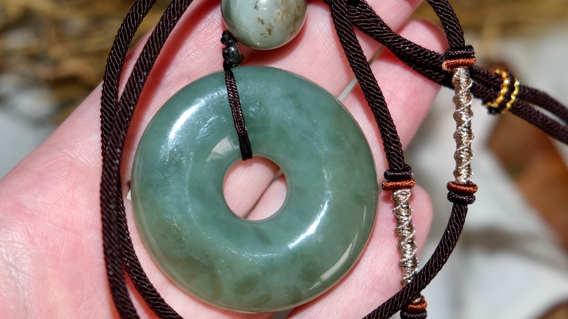 Подвес нефрит _диск Би_ из сибирского нефрита Диск Би - ритуальный предмет, выполнен из добротного зеленого сибирского нефрита, дополнен нефритовой бусиной. Параметры: Диаметр - 4,6 см. Глубина - 0,8 см. Вес - 40,32 гр. Нить и мешочек в комплекте. Диск Би, древний ритуальный предмет - символ небес, олицетворяет силу Творца, единый замысел, изначальную творческую энергию. Как талисман служит проводником для формирования новых идей, смыслов, целей и направлений. Также, это мощный символ проводника Божественной энергии. Диск би символизирует небо, а его смысл — быть средоточием талантов, которыми хотел бы обладать владелец с благословения небес. По преданию, сакральные свойства диска Би проявляются именно в соприкосновении с телом владельца (носить в руке, на шее...изучать тактильно, постигая смыслы в него заложенные)... В китайской истории нефрит, как и диски би, указывал на высокие моральные качества владельца, а также служил важным символом высокого положения в обществе. Их использовали во время богослужений и светских церемоний — как предметы, символизирующие власть.