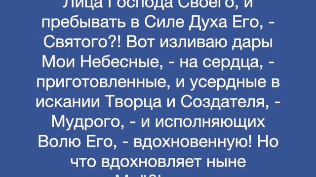 Слово от Господа Откровение Духа Святого! Получено на молитве 25 июля 2020 года, о неуверенности возрастающей: "Так говорит Господь! - И почему предались дети Мои неуверенности возрастающей?! - дочь Моя, - о Приходе Моём скором, - приближающемся, - дитя, - и возлагают надежды свои несбыточные на мир этот, - в прикрасах обманчивых, - путей широких, - кривых?! И где будет лучше для души вашей?! - народ, - переставший искать Лица Господа Своего, и пребывать в Силе Духа Его, - Святого?! Вот изливаю дары Мои Небесные, - на сердца, - приготовленные, и усердные в искании Творца и Создателя, - Мудрого, - и исполняющих Волю Его, - вдохновенную! Но что вдохновляет ныне наследие Моё?! - переставшее ожидать Искупителя и Жениха Любящего, и не взирающее на воздаяние Вечное, и не хотящее венца Моего, - Славного?! О дети, дети, и на кого уповаете вы душами своими израненными, и заблудившимися среди пороков греховных, - нечистоты, - усиливающейся?! Ибо очищаю Сам Рукою Своею, - алмазы, - дорогие, и приготовляю им оправу, - не ветшающую!" Аминь!
