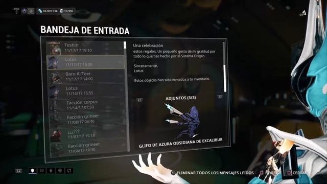 Hola chicos les traigo un video donde celebran el 4º año de warframe en la Ps4 y para ello regalan figuristas tambaleante de excalibur , un catalizador orokin , una forma , un glifo y una foto de excalibur azura . Si le ha gustado dale un like , suscribanse a mi canal y nos vemos en el proximo video adiossssssss.