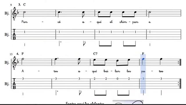 Fantes Tab Sheet Music for Banjo Children Canon 4 Voices Tablature