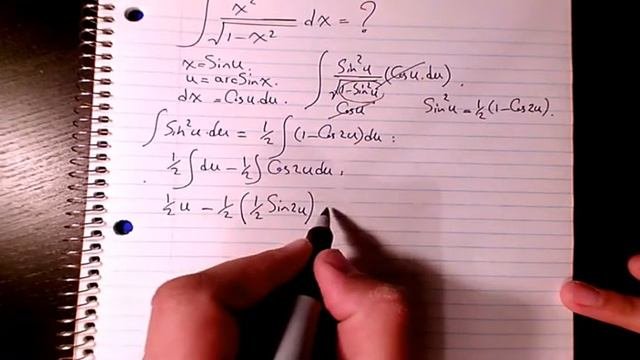 How to integrate x^2/sqrt(1-x^2), integration by substitution, indefinite integral, calculus