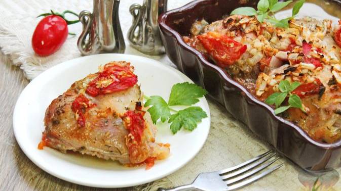 Сочная птица на тарелку просится. КУРИНЫЕ БЁДРА, ЗАПЕЧЁННЫЕ С ПОМИДОРАМИ