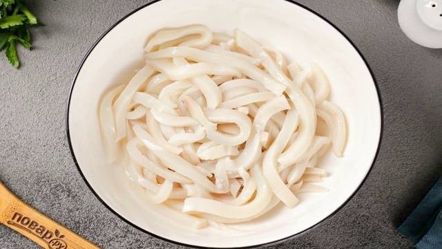 Приготовить кальмаровый салат с огурцом можно как в качестве сытного перекуса, так и к любому праздничному столу. Салат можно заправить майонезом или оливковым маслом. Ингредиенты: Кальмары2-3 штук, Огурец1 штука, Яйцо вареное3 штуки, Лук1 штука, Растительное масло3 ст. ложки, ЗеленьПо вкусу, МайонезПо вкусу, СольПо вкусу, Перец черный молотыйПо вкусу, Благодарим за просмотр! Подписывайтесь на канал🍕 Поделитесь своим мнениенм о рецепте в комментариях!