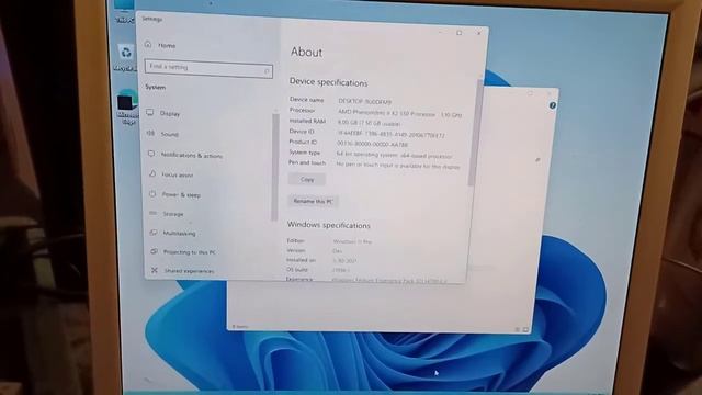 Windows 11 running on Patato box PC with AMD Phenom II X2 550