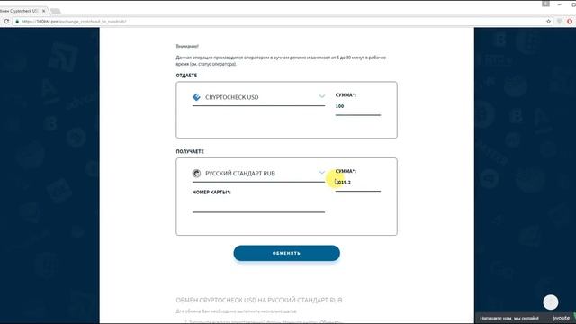 Обмен Cryptocheck на Русский Стандарт | 100btc.pro