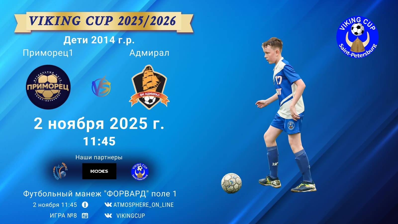 VIKING CUP среди команд 2014 г.р. (U11), Поле 1 2 ноября 2025 САНКТ-ПЕТЕРБУРГ, ФЦ "Форвард" ФК "Приморец1" - ФК "Адмирал"/VIKING CUP, Игра №8, 02-11-2025 11:45