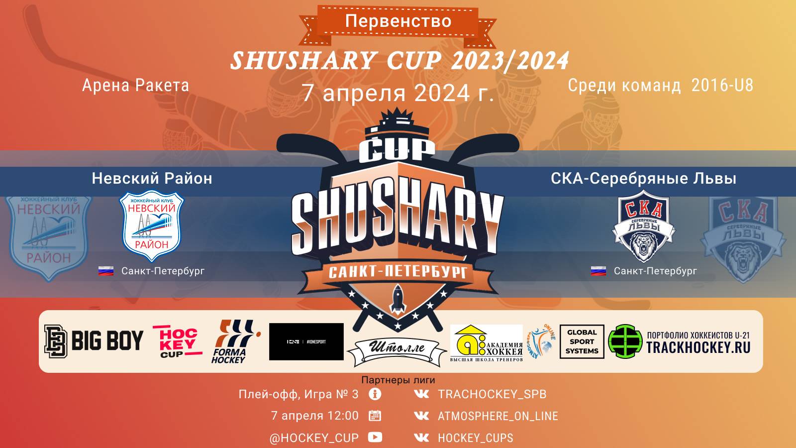 ПЕРВЕНСТВО SHUSHARY CUP среди команд 2016 г.р. (U8), Арена "Ракета" 7 апреля 2024 САНКТ-ПЕТЕРБУРГ, ПЛЭЙ-ОФФ, Игра № 3 ХК "Невский район"-ХК "СКА Серебряные Львы"/ПЕРВЕНСТВО SHUSHARY CUP, 07-04-2024 12:00