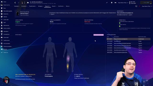 Impariamo a ridurre gli infortuni gestendo al meglio i fattori di rischio grazie al Centro Medico donazioni: https://streamlabs.com/lucullusgames/tip Il canale Twitch: https://www.twitch.tv/lucullusgames Il gruppo discord: https://discordapp.com/invite/Vvds4Jz Il canale telegram: https://t.me/lucullusgames La pagina facebook del blog: https://www.facebook.com/lucullusgames/ Il gruppo Steam: http://steamcommunity.com/groups/LucullusGames #FootballManager2023 #bolognafc #lucullusgames La playlist dell'allenamento: https://www.youtube.com/watch?v=LQ7ZaipWJq4&list=PLTljZDn6zbIAGbJFfxlm-N507wgWojtBM 0:00 - Introduzione 0:38 - Panoramica sui fattori di rischio 4:28 - Schermate alternative 5:16 - Rapporto Medico 5:40 - La partita 6:18 - Intensità della tattica 8:36 - Carico Partita 10:36 - Carico di Allenamento 12:42 - Rischio infortuni 12:53 - Propensione agli infortuni 14:54 - Infortuni Ricorrenti 17:39 - Cosa influisce sul Rischio Infortuni 18:32 - Come calcolare la propensione agli infortuni 18:45 - Fatica 23:43 - Condizione Fisica Complessiva 25:37 - Migliore Condizione per scendere in campo 28:06 - Forma Partita 29:30 - Come rendere i titolari disponibili per le under 31:24 - Le altre schermate del Centro Medico 32:00 - Confrontare gli infortuni tra le varie stagioni 32:40 - Percentuale giorni persi in stagione