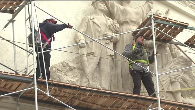 В Краснодоне, при помощи шеф-региона — Тюменской области, завершаются работы по восстановлению фасада Дворца культуры.