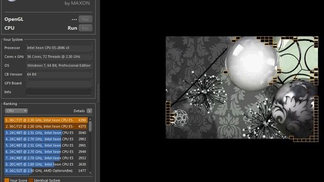 2* Xeon E5-2696v3 2.3ghz 36core/72thread cinebench r15 test
