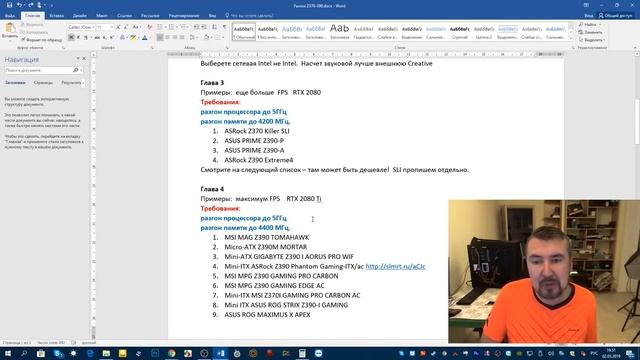 ▶️Глава 1 Примеры: i7-8700, i5-8400, i5-9400F RTX 2060 ✅Требование: разгон памяти до 3900 МГц. 1. GIGABYTE Z370 HD3 (rev. 1.0) http://slmrt.ru/aTF 2. ASRock Z390 Phantom Gaming 4 http://slmrt.ru/aEJc 3. mini-ITX ASRock Z390M-ITX/ac http://slmrt.ru/aFJc Они могут гнать! Скидка 5 евро на первую покупку в www.computeruniverse.ru FWED9WI ▶️Глава 2 Примеры: i7-8700K, i5-9600K, i7-9700K RTX 2070 Требования: ✅разгон процессора до 5ГГц ✅разгон памяти до 3900 МГц. 1. MSI Z370-A PRO http://slmrt.ru/atS 2. GIGABYTE Z390 UD (rev. 1.0) http://slmrt.ru/aPJc 3. ASUS PRIME Z370-P II http://slmrt.ru/awJc 4. ASUS PRIME Z370-P http://slmrt.ru/aQJc 5. m-ATX GIGABYTE Z370M D3H http://slmrt.ru/aqpb 6. m-ATX GIGABYTE Z390 M GAMING http://slmrt.ru/aDJc 7. m-ATX ASUS PRIME Z390M-PLU http://slmrt.ru/axJc 8. MSI Z370 PC PRO http://slmrt.ru/avS 9. GIGABYTE Z390 GAMING X http://slmrt.ru/ayJc 10. ASUS TUF Z370-Plus Gaming II http://slmrt.ru/azJc 11. m-ATX ASUS TUF Z390M-PRO GAMING (WI-FI) http://slmrt.ru/aRJc Выберете сетевая Intel не Intel. Насчет звуковой лучше внешнюю Creative ▶️Глава 3 Примеры: еще больше FPS RTX 2080 Требования: ✅разгон процессора до 5ГГц ✅разгон памяти до 4200 МГц. ? 1. ASRock Z370 Killer SLI http://slmrt.ru/azS 2. ASUS PRIME Z390-P http://slmrt.ru/aSJc 3. ASUS PRIME Z390-A http://slmrt.ru/aTJc ?4. ASRock Z390 Extreme4 http://slmrt.ru/aUJc Cмотрите на следующий список – там может быть дешевле! SLI пропишем отдельно. ▶️Глава 4 Примеры: максимум FPS RTX 2080 Ti Требования: ✅разгон процессора до 5 - 5,4 ГГц ✅разгон памяти до 4400 МГц. 1. MSI MAG Z390 TOMAHAWK http://slmrt.ru/aGJc 2. Micro-ATX Z390M MORTAR http://slmrt.ru/aHJc 3. Mini-ITX GIGABYTE Z390 I AORUS PRO WIFI http://slmrt.ru/aIJc 4. Mini-ITX ASRock Z390 Phantom Gaming-ITX/ac http://slmrt.ru/aCJc ?5. MSI MPG Z390 GAMING PRO CARBON http://slmrt.ru/aJJc ?6. MSI MPG Z390 GAMING EDGE AC http://slmrt.ru/aKJc 7. Mini-ITX MSI Z370I GAMING PRO CARBON AC http://slmrt.ru/arpb 8. Mini-ITX ASUS ROG STRIX Z390-I GAMING http://slmrt.ru/aNJc ?9. ASUS ROG MAXIMUS X APEX http://slmrt.ru/aspb ?10. MSI MEG Z390 ACE http://slmrt.ru/aLJc (4500 МГц) ?11. ASUS ROG MAXIMUS XI HERO (WI-FI) http://slmrt.ru/aMJc 12. m-ATX ASUS XI GENE http://slmrt.ru/aWJc (4600 МГц) Лучше брать самую дешевую из списка. ▶️Глава 5 Hi-END Требования: ✅разгон процессора до 5ГГц ✅разгон памяти до 4600 МГц. ?1. ASUS ROG MAXIMUS XI APEX http://slmrt.ru/aVJc ?2. MSI MEG Z390 GODLIKE http://slmrt.ru/aXJc ▶️Глава 6 ✅Для красоты + 5 ГГц + 4000 память ?1. GIGABYTE Z370 AORUS ULTRA GAMING 2.0 (rev. 1.0) http://slmrt.ru/aYJc ?2. m-ATX ASUS ROG STRIX Z370-G http://slmrt.ru/aZJc ?3. GIGABYTE Z370 AORUS ULTRA GAMING 2.0-OP (rev. 1.0) http://slmrt.ru/aBJc ?4. GIGABYTE Z390 AORUS PRO WIFI (rev. 1.0) http://slmrt.ru/a0Jc ?5. Водо чипсет GIGABYTE Z390 AORUS XTREME WATERFORCE (rev. 1.0) http://slmrt.ru/a1Jc ?Примечание: 1) если мать Z370 для 9 серии процессоров биос должен быть обновлен 2) хорошо гонится память на чипах самсунг и таймингами до 14 при частоте не менее 2666. 3) Перед монтажем скачайте драйвер сетевой Все матери поддерживающие SLI помечены?