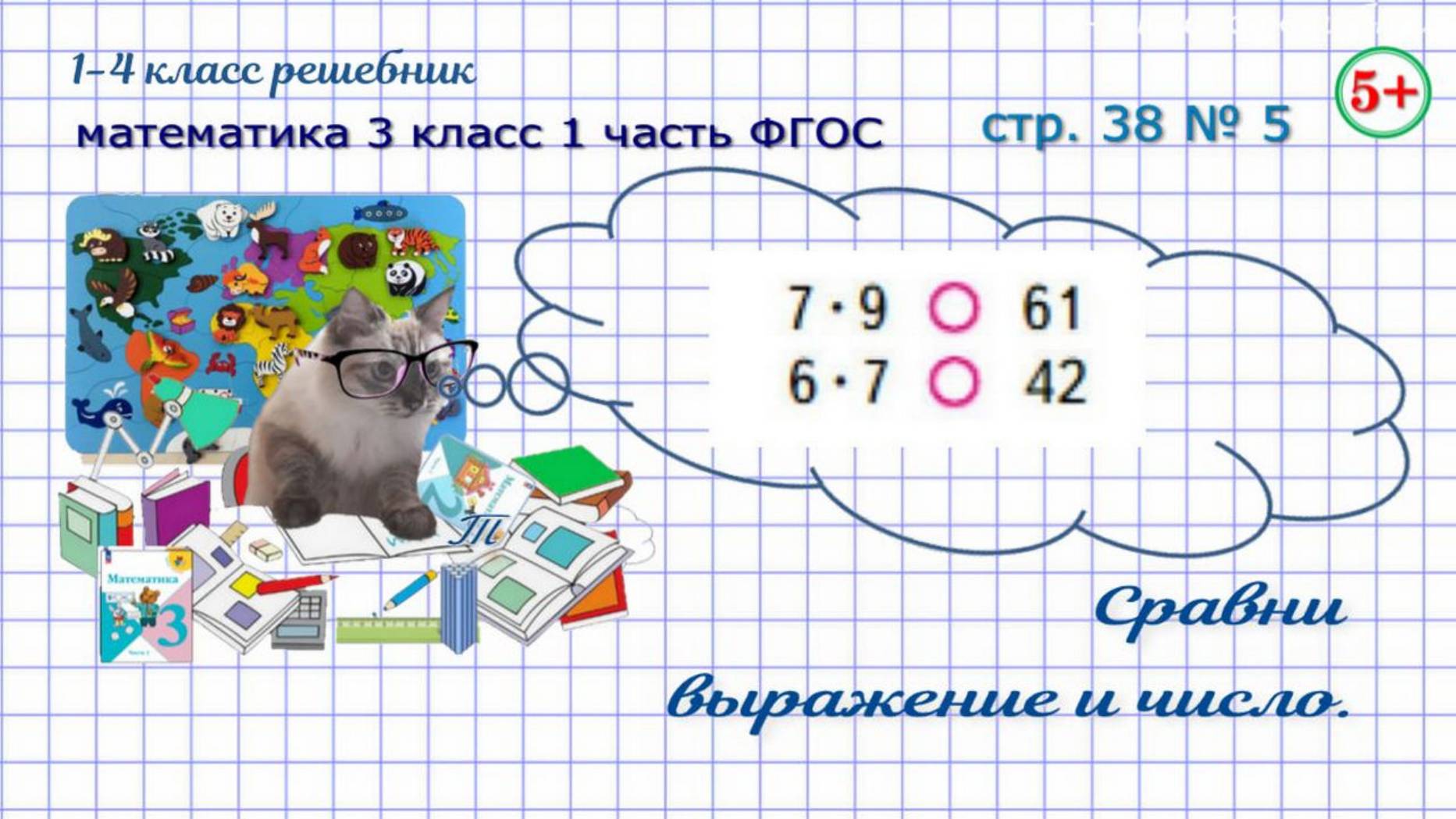 Сравни выражение и число. Поставь знаки больше, меньше или равно так, чтобы равенства или неравенства стали верными. Страница 38 № 5 математика 3 класс 1 часть Моро 2023 г. ФГОС. Если нашли ошибку, напишите, пожалуйста, в комментариях. Сайт с текстовым содержанием: https://dzen.ru/id/650204661aba9b0ba4b2643e #обучениематематике#математика3класс1частьстр38номер5#сравнивыражениеичисло#поставьзнакибольшеменьшеравно#таблицаумноженияиделения#математика3класс1частьФГОС#математика3кл1чФГОС#математика3класс1частьморо2023#длядетей#решебникматематика3класс#гдзматематика3класс#начальныеклассы#1-4классрешебник+