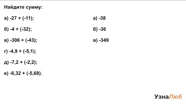 6 класс, Сложение отрицательных чисел, Найдите сумму