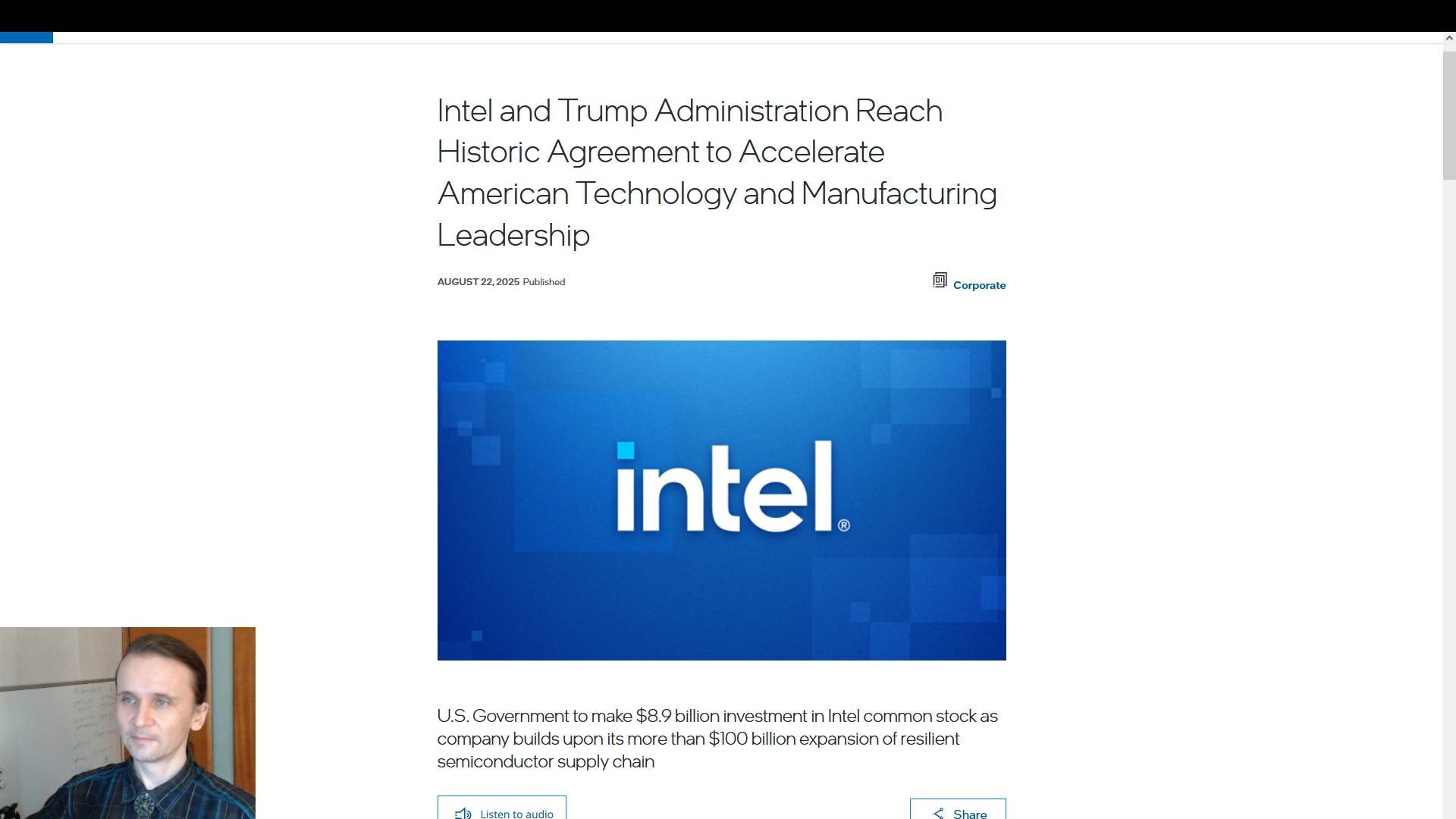 Подборка экономических новостей. Как США стало акционером INTEL