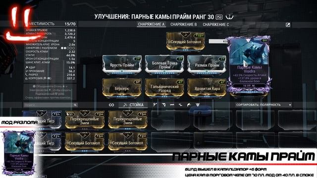 Варфрейм Серая Лига / Warframe Grey League камы прайм + мод разлома / туча урона