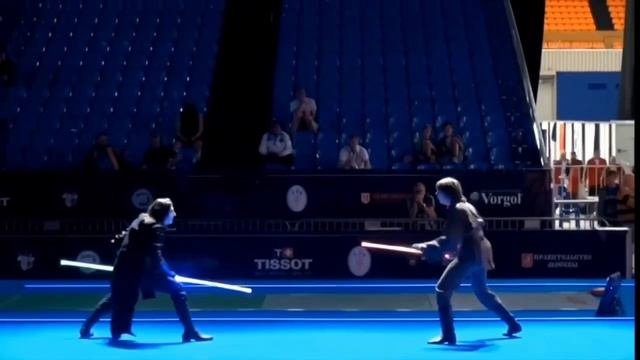 На чемпионате мира по фехтованию провели дуэль на световых мечах.