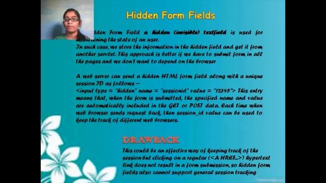 Hello everyone!!I am Bhavya Shrivastava currently pursuing integrated M.Tech.(IT) from IIPS DAVV, Indore.This video presentation is a part of my college assignment and is guided by Dr. Nitin Nagar Sir. The topics covered in the videos are: 1. Session Tracking 2. Cookies 3. Session Tracking with HttpSession