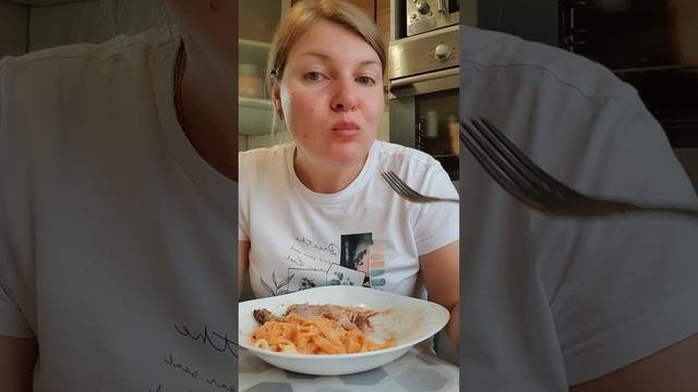 Мукбанг. Домашняя лапша, жареный окорочок, дайкон, баклажаны в меду😋