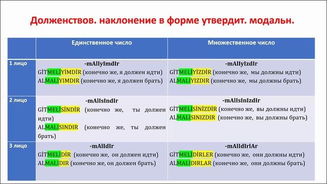 Из этой лекции вы узнаете, в каких еще вариантах может употребляться форма долженствовательного наклонения -mAlI. Одновременно с этим мы вспомним утвердительную, субъективную и условную модальность, которые замечательно сочетаются с -mAlI.