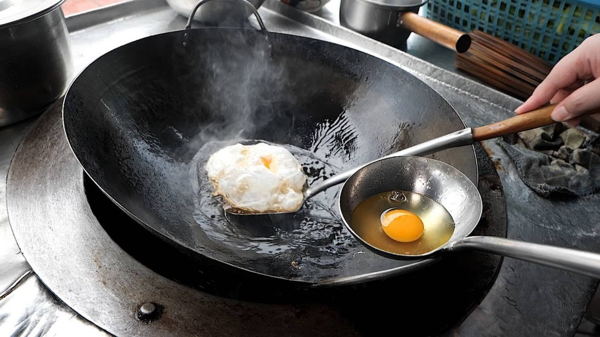 Дедушкин рецепт приготовления жареных яиц, свинины, риса и лапши - уличная еда в Таиланде