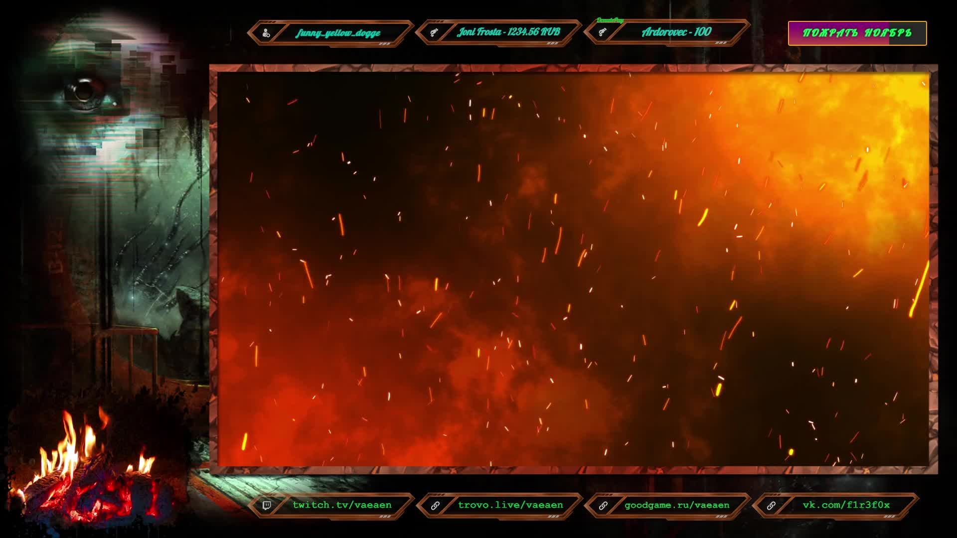 Если хотите поддержать меня как стримера - нажмите по данной ссылке https://www.donationalerts.com/r/f1r3f0x Donate for USD, EU all world - https://new.donatepay.ru/@vaeaen Во время стрима ваше сообщение появится на экране, и будет сопровождаться голосовым диктором. Поддержка на прямую: Сбер: 2202 2010 0629 1039 Тинькофф: 2200 7008 4677 0625 Основные каналы: Twitch: https://www.twitch.tv/vaeaen GoodGame: https://goodgame.ru/channel/Vaeaen/ Trovo: https://trovo.live/Vaeaen Дополнительные: Boosty: https://boosty.to/vaeaen VKplay: https://vkplay.live/vaeaen Nuum: https://nuum.ru/channel/vaeaen YouTube: https://www.youtube.com/channel/UCsl3CyRcImUYtWiCgEdvmjQ