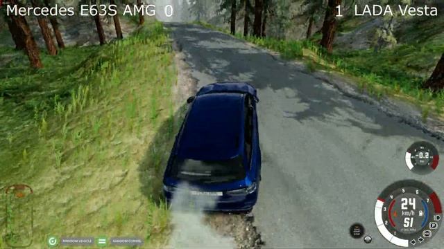#beamngdrive Чемпионат Среди авто бимки идет 1/8. В гонки четвертая двойка участников и в этот раз это E63s AMG VS Lada VESTA. Авто выбираются рандомно и состязаются в трех этапах. Этап состоит из трех Испытаний. Первый этап и испытания этапа заезд на скорости, Лес чудес с препятствиями и спуск с горы. Да победит сильнейший