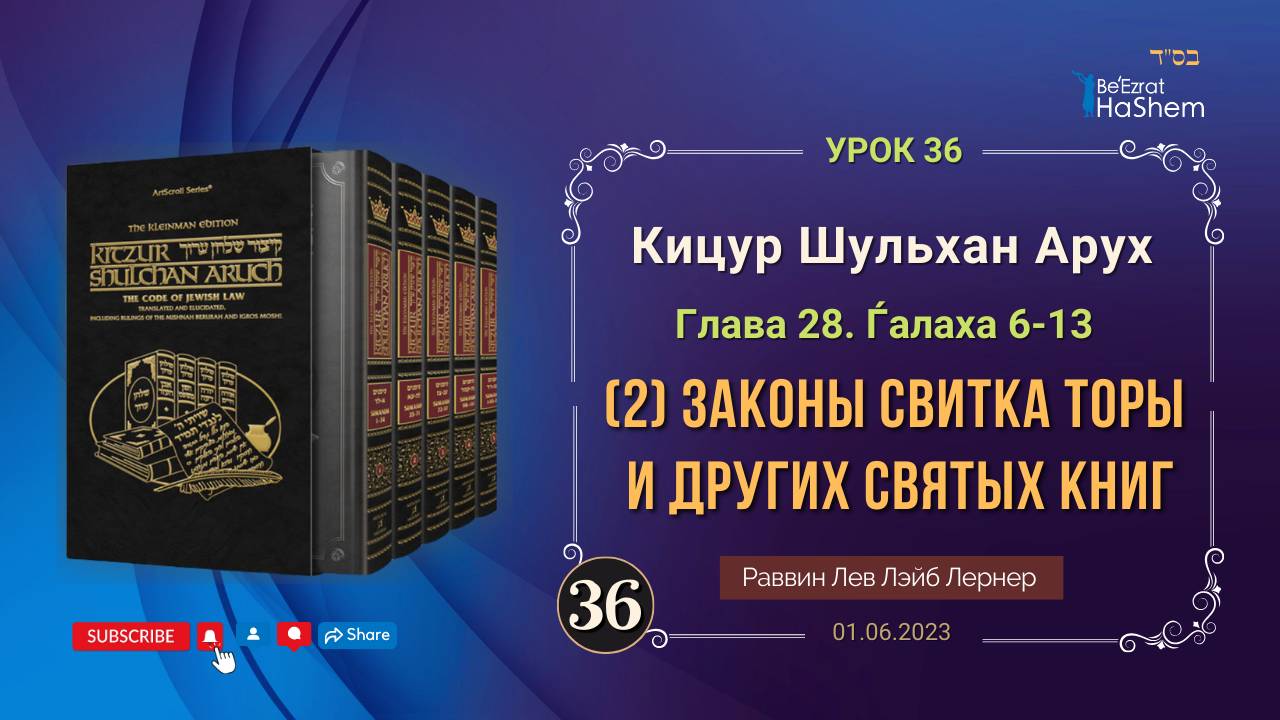 𝟑𝟔. (2) Законы свитка Торы и других святых книг| Кицур Шульхан Арух 28/6-13|Рабби Лев Лэйб Лернер
