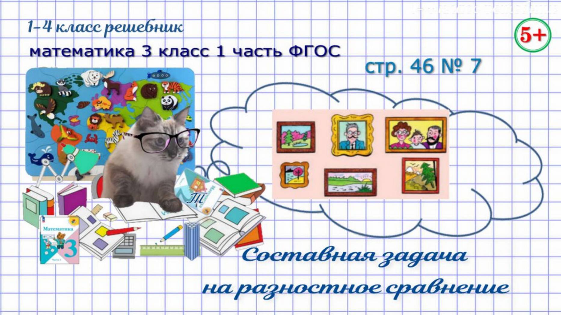 Стр. 46 № 7 задача на разностное сравнение, тень от портрета математика 3 класс 1 часть ФГОС 2023