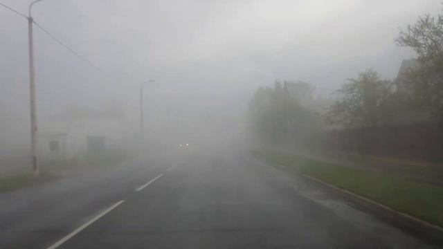 После жары в +32 градуса налетел ураган с градом, градины размером с виноград чуть не побили стекла в машине :) А потом город накрыло густым-густым туманом