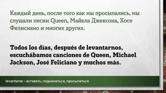 Группа "Учим Испанский" в Телеграм: https://t.me/+RVQ0u4_f5UE5YmVi Урок основан на эпизоде подкаста взятом на сайте http://podcast.duolingo.com Полная ссылка на эпизод подкаста с транскрипцией: https://podcast.duolingo.com/episode-19-flamenco Уроки начинающиеся на "№##duolesp*****" имеют уровень сложности A1-A2 и латиноамериканский акцент. Данный материал предназначен исключительно в образовательных целях. Данный материал был частично синтезирован с помощью искусственного интелекта. Цель – заставить мышление учащегося формировать фразы, части фраз, на испанском языке. Каждая фраза повторяется три раза. Повторения происходит не подряд, а с некоторым "смещением", заставляя всё время мысленно переключаться на другую фразу. Пауза между фразами служит для того, чтобы вспомнить хотя бы одно слово, часть фразы или всю фразу на испанском языке. Чем длиннее фраза на русском языке – тем длиннее пауза до фразы на испанском языке. Достаточно, если человек самостоятельно начинает формировать хотя бы кусочки фразы, некоторые слова. Данный вид упражнений не стоит делать более одного часа за один раз. Достаточно прослушивать такие упражнения в фоновом режиме: замимаясь домашними делами, находясь в дороге или на прогулке, занимаясь спортом. Чтобы выучить любой язык необходимо «провести с ним» 10 000 часов. #испанский #испания #слова #фразы #aprender #español #españa #español #испанскийязык #испанскийбесплатно #испанскийэффективно #учимиспанский #испанскийучить #shadowing #ShadowingTechnique #Lerntechnik #произношение #грамматика #subjuntiv #expresiones #shadowingmethode #эффективно #españolonline #españoloffline #aprenderespanolonline #pimsleur #paulpimsleur Слова и выражения из этой части подкаста: ================================================ ahorrar - экономить, копить деньги bailar flamenco - танцевать фламенко cabeza en alto - высоко поднятой головой convencer - уговаривать, убеждать de cuando ella era chica - о её детстве dedicar el día - посвящать день, уделять весь день demasiado - чересчур, слишком много el espíritu - дух, душа estar nervioso - переживать, беспокоиться la adolescencia - подростковый возраст, юность la disquería - музыкальный салон, музыкальный магазин la escuela secundaria - средняя школа, среднее образование la expresión - выражение, (здесь) выражение лица la sala - зал, гостинная levantarse - вставать, подниматься, просыпаться los domingos - по воскресеньям, каждое воскресенье música en casetes - музыка на магнитофонных кассетах solo con mirarnos - только взглянув друг на друга, мы .... todavía - всё ещё, по-прежнему todo tipo de música - все виды музыки verde claro - светло-зелёный